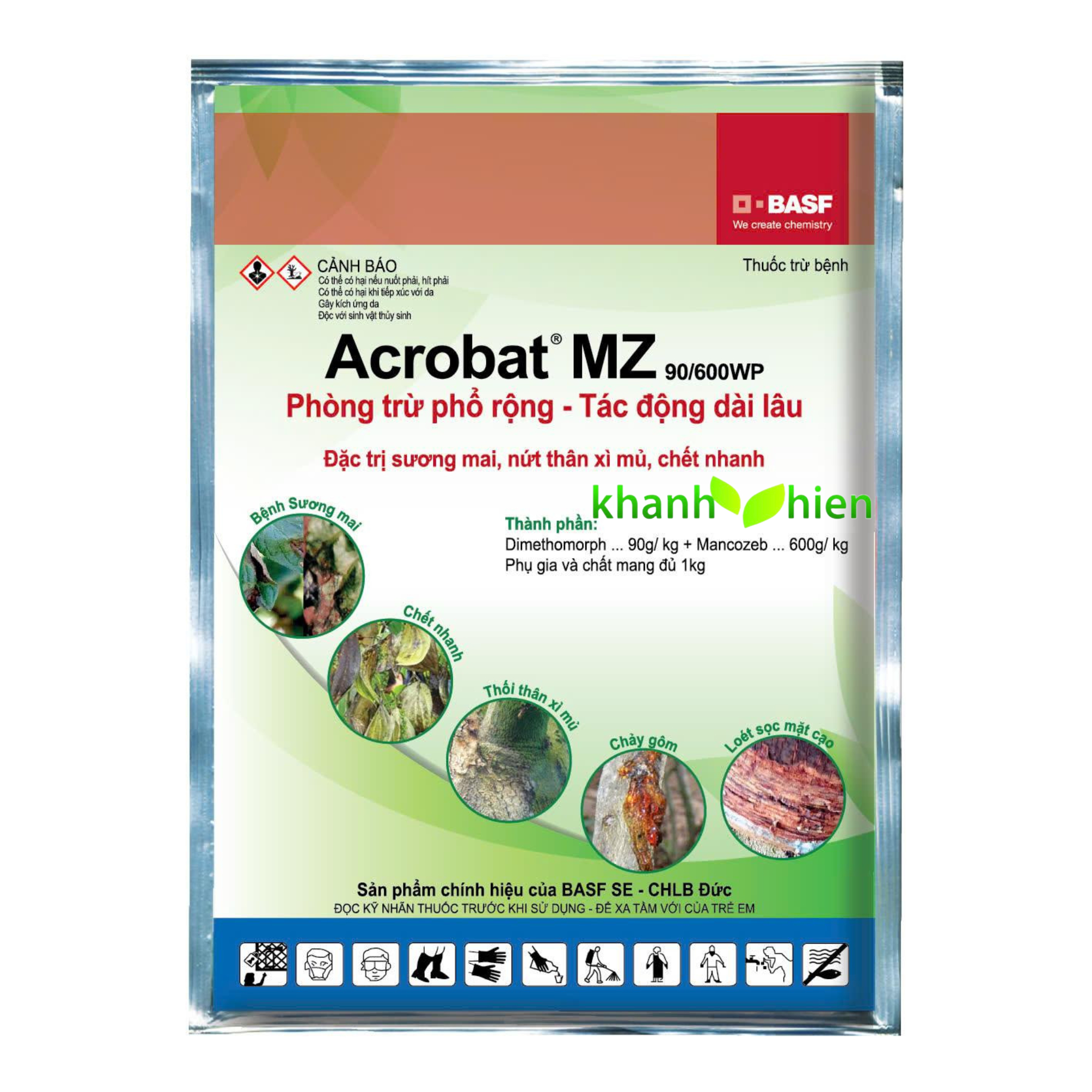 Acrobat® MZ 90/600WP: Chặn đứng sự phát triển của nấm bệnh (trị bệnh) và bảo vệ cây khỏi sự xâm nhập của nấm bệnh (phòng bệnh).